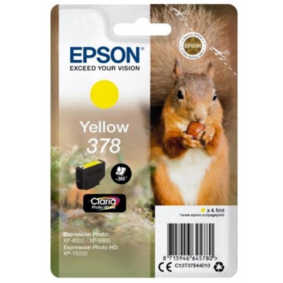 Tusz Oryginalny Epson 378 (C13T37844010) (Żółty) Producent: Epson Kod producenta: C13T37844010 Rodzaj: Tusz Typ: Oryginalny Kolor: Żółty Kolor (english): Yellow Przeznaczony do urządzeń: Epson Pojemność: 4.10 ml Wydajność: 360 stron Tusz pasuje do drukarek:Pokrewne kody: Tusz, Tusze, Ink Cartridge, Ink Cartridges, C13T37844010, 378, Epson
