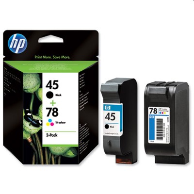 Przedstawiamy komplet w 100% oryginalnych tuszów HP 45 i 78 (czarny i kolorowy), które są dedykowane do wybranych kolorowych urządzeń drukujących marki Hewlett-Packard z serii Deskjet, FAX, Officejet oraz Photosmart (aby sprawdzić czy Twoja drukarka znajduje się na liście pasujących urządzeń, odwiedź zakładkę „Dane produktu”).