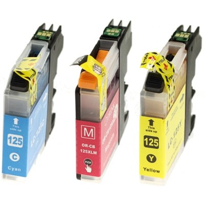 Tusze zamienniki Brother LC-125 XL CMY (LC125XLRBWBP) (trójpak) to dedykowane do drukarek Brother kolorowe tusze, dzięki którym Twoje wydruki będą miały dynamiczne kolory oraz właściwe przejścia tonalne. Wszystkie dokumenty, zdjęcia czy grafiki wydrukowane za pomocą zamienników Brother LC-125 XL CMY odzwierciedlają najwyższą jakość wkładów do drukarek od DrTusza.