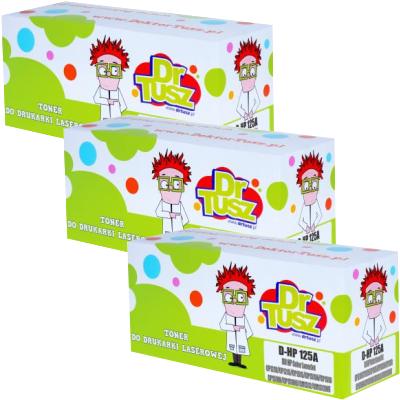 Trójpak zamienników HP 125A od DrTusza składa się z trzech tonerów. Na trójpak składa się: toner zamiennik HP 125A (CB541A) (błękitny), toner zamiennik HP 125A (CB542A) (żółty) oraz toner zamiennik HP 125A (CB543A) (purpurowy).